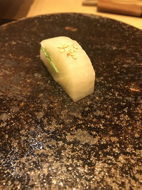 シイタケの茶碗蒸しをはさんで、鯵、熟成カジキのヅケ、マグロ。熟成カジキはなかなか珍しいかも。独特な風味がうまれていて面白かったです。