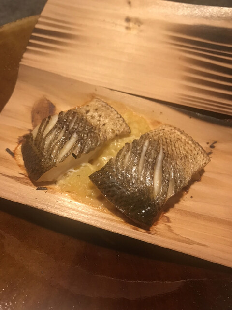 セコガニとホワイトアスパラの一品。セコガニは内子やほぐし身を脚の身でロール状にしてあります。これなかなか珍しいかも。でもこれはこれで、端からかじりながらお酒をちびちび飲むにはいいですね(^o^)身と内子のハーモニーがずっとたのしめます。ホワイトアスパラも美味しいですし、良い口直しに。