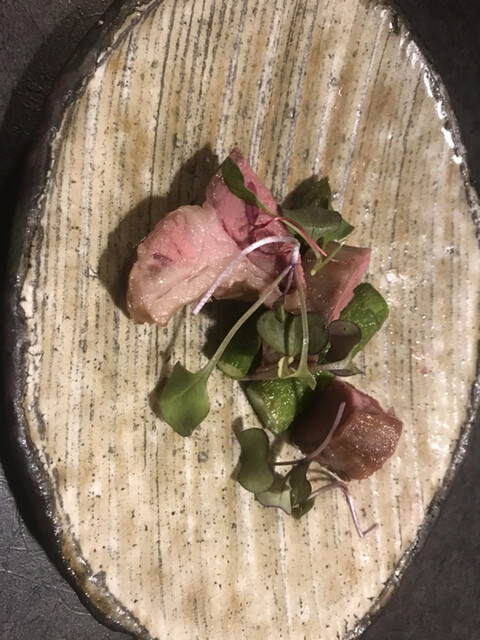 マグロの漬けにニラのソースの皿はニラ!?って思いましたが、なんか美味しい(笑)こういう発見をさせてもらえるのは楽しいです。