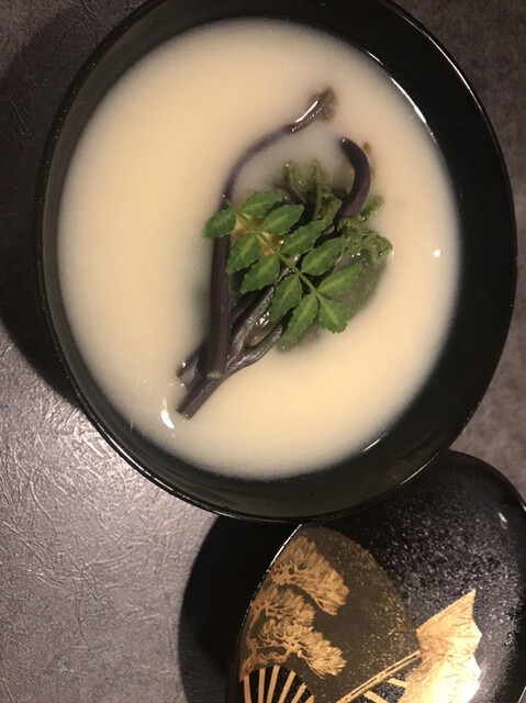 食べたらわかります。わらびを使ったわらび餅のような食感の一品。これ、かなり美味しくいただきました。わらび餅もわらび自体もお汁も最高でした。