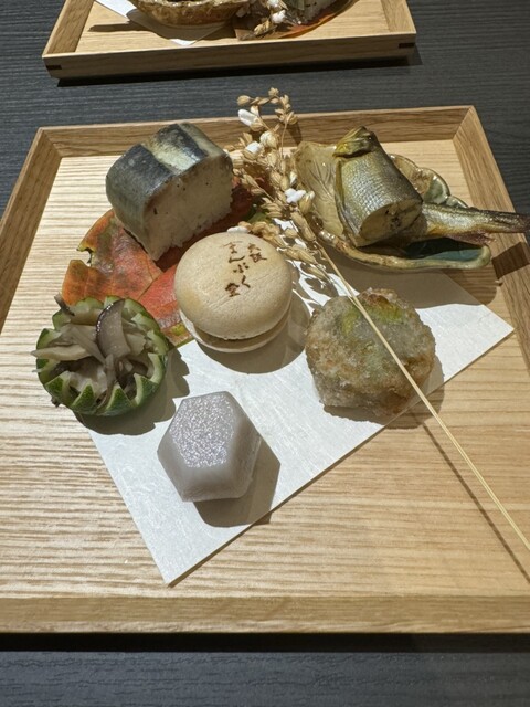 ここで八寸盛り。日本酒がすすみます。ほんとはアピオスの串もあったのですが、食べてから写真の撮り忘れに気づいたので串だけが写真にはいってます笑 牡蠣のオカラがなかなかお気に入り。
