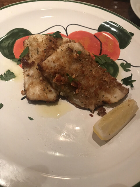 サワラの焼いたのも。ソース名忘れました(笑)これも焼きの技術なのか素材なのがほんとに美味。二人で半分づつ食べてますが、鮎もサワラも一人で全部食べたかった、、、