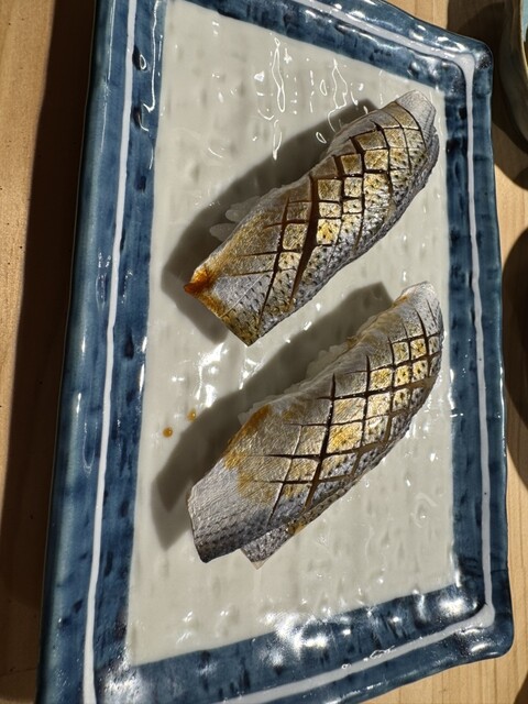 イサキを軽く焼いてもらいましょう。肴ぬ丁度良いサイズ。しかしジューシーに焼けてます。これぞ寿司屋の焼魚ですね。
