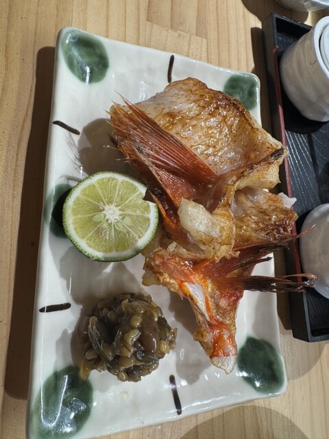 キンキはアテでお願いします。軽く炙りで。これはもう少し強く炙っても良いかも。