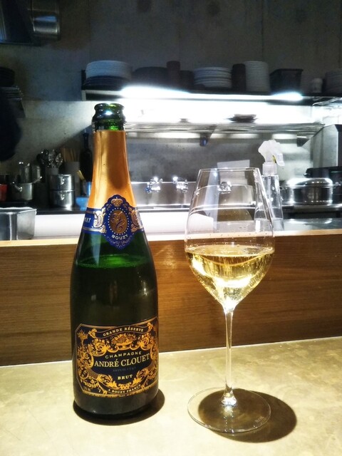 こちらは新の方、2019年6月にこの地に移転してきたお店です。ドアに描かれた栗のシンボル、シャテーニュという店名、どちらも栗原オーナーシェフの名前から来ています。地下への細く急な階段を降りると、スタイリッシュなカウンターキッチンに迎えられ、隠れ家を訪れるような高揚感のある空間でした。