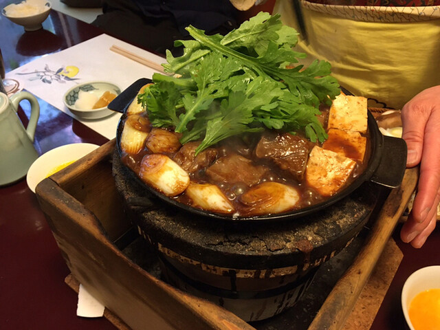 牛鍋は評判通り、期待を裏切らない旨さ。