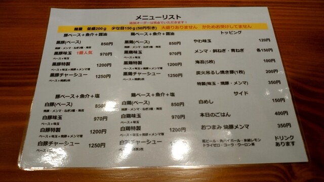 券売機にて、黒豚チャーシュー(麺少なめ)を購入しカウンター席に座り食券を渡します。