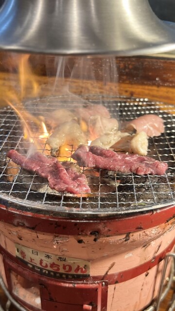 ここに来たらまずは肉刺しですよねー。ハツもセンマイ刺しも新鮮で美味いです。七輪が出てくる前にごはんも酒も進んでしまいます笑。