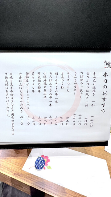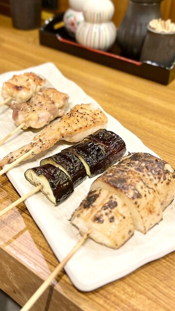 焼き加減も丁度良いです。特に長芋は焼き過ぎず好み。そして、適度な歯ごたえとコクが魅力の小樽地鶏のモモ・ムネ、そして手羽先、つくね。