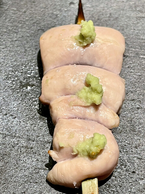 ●串:比内地鶏ささみさび焼き あっさりでも肉にコクがあって甘いです