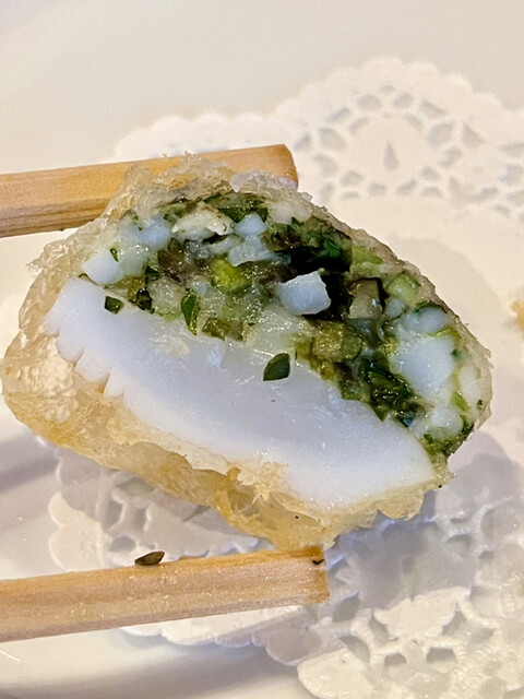 薯蕷の甘味と粘りがフリットできれいにまとめられて、いさじゃバターがしっかり支えます。