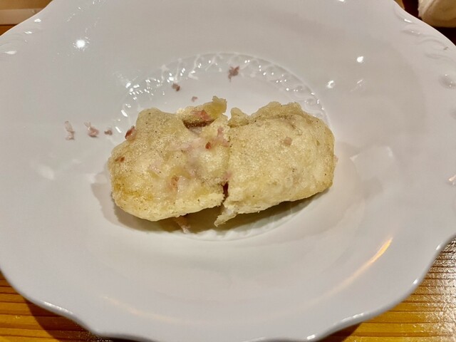 薯蕷を擦り下ろして、宇佐美さんがアフミカータしたスカモルツァチーズを練り込んでボッコンチーニにしてあります。