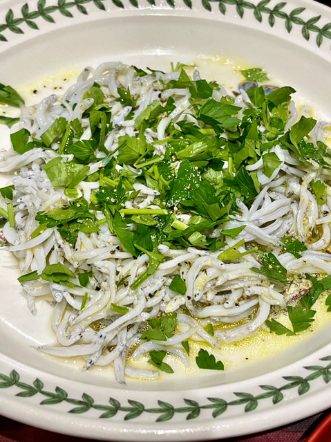 翌日も縮緬を大蒜醤油でパスタにしたり、サラダのトッピングにしたりして楽しませていただきました。