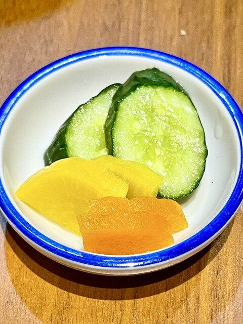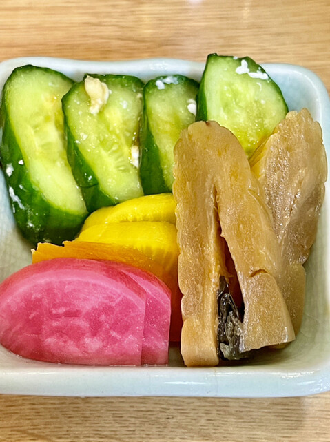 お新香はこちらの女将さんがつけているもので、特にきゅうりが美味しいです。