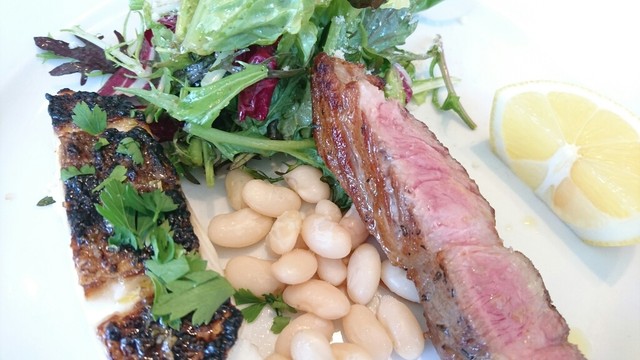 メインの魚もお肉も、さっぱり塩味。外はカリッカリ、中はふわふわ。