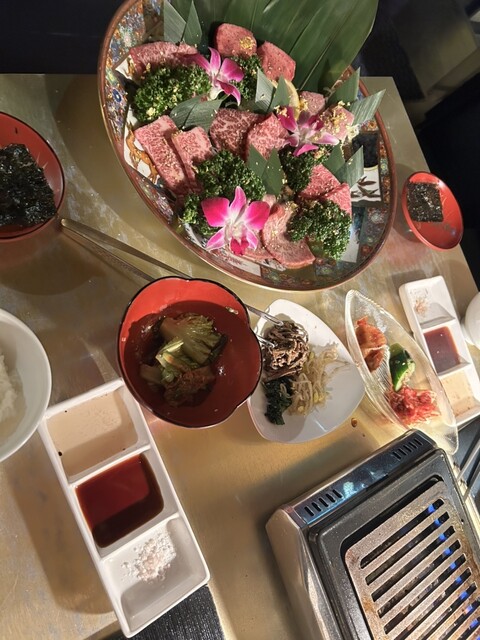 六本木でキラキラゴールドな焼肉屋さん!お肉の盛り合わせに金粉をかけてくれて楽しかった♡赤ワインとお肉っていいよね