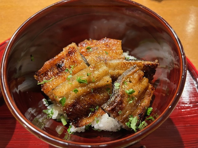 〇御腹もはちきれそうになってきましたが、岡山の海鰻のうな丼 花山椒を添えて
