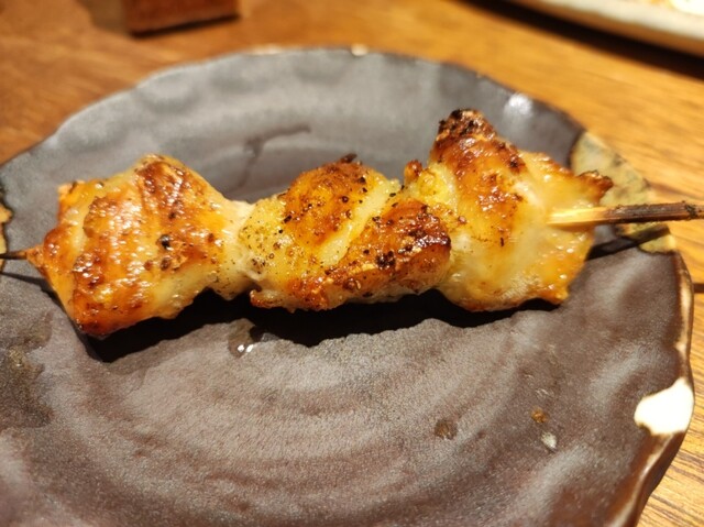 お通しはほたてにぎり1貫。続いて刺身盛り合わせ2人前、春野菜の天ぷら。焼鳥が有名な久留米市だけあって、こちらのお店でも串焼を20種類以上提供しています。ダルム、豚バラ、ぼんじり、さがりを注文。どの料理もおいしくてハスレなし。〆には高菜チャーハン。