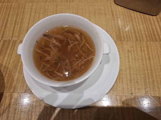 私が最初に注文したのは、スーツァン・レストラン陳において必ず注文する雲白肉の旨辛ソースだったのであるが、旨辛ソースの少し甘い薬膳風味の味わいと豚バラ薄切り肉、胡瓜の薄切りの見た目の素晴らしさは変わっていなかった。しかし、今回の旨辛ソースは前回と違って辛みが多少強かったので、炊きたての千葉県産コシヒカリご飯にのせていただくと最高だったのである。さらに私はフカヒレのスープも注文したのであるが、フカヒレのスープも独特のコクと旨味が最高だったので満足感が得られた。