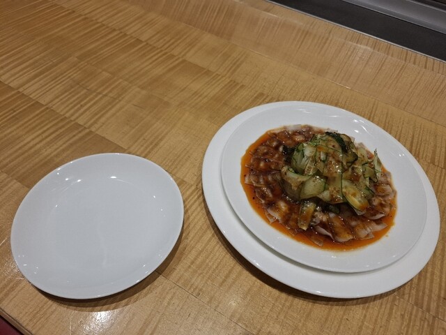 雲白肉に使用される豚バラ肉は、以前の鹿児島県産の南州黒豚肉から沖縄県産のきびまる豚に変更されていたのであるが、豚バラ肉ならびに胡瓜の見た目、薄さ、盛り付け方が美しい極上の雲白肉であった。さらに、旨辛風味のたれも甘みが少なく数種の香辛料の香りが深かった上に、きびまる豚のバラ肉も噛むたびに旨味と甘みが口の中に広がったのである。そのため、白いご飯のおかずとしても大変貴重だった。