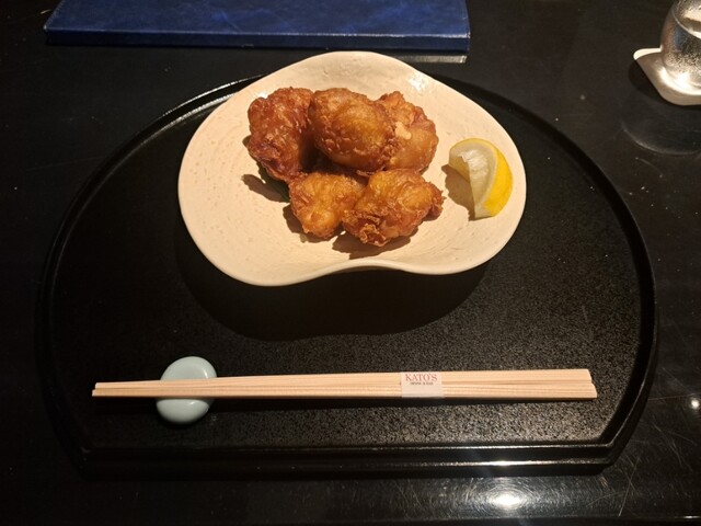 博多一番鶏の唐揚げです。衣の食感と味付けが最高で、噛むたびに口の中に旨味が広がりました。