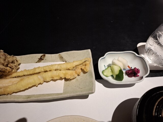 ぼくは長崎県産の穴子の一本揚げと、岩手県産の若鶏の唐揚げにレモン汁をかけ、めんつゆ風味のタレ、塩、カレー塩につけて食べてみましたが、穴子も若鶏もふんわりと柔らかい口あたりだったのです。また若鶏の唐揚げは、口の中でとろけるほどでした。さらに、穴子の一本揚げにつけ合わせされていた茸としし唐の天ぷらも、最高の味わいでした。