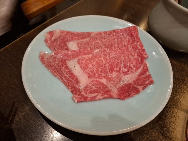 近江牛リブロースのしゃぶしゃぶ肉です。霜降りが綺麗で、噛むたび口の中に旨味が広がります。