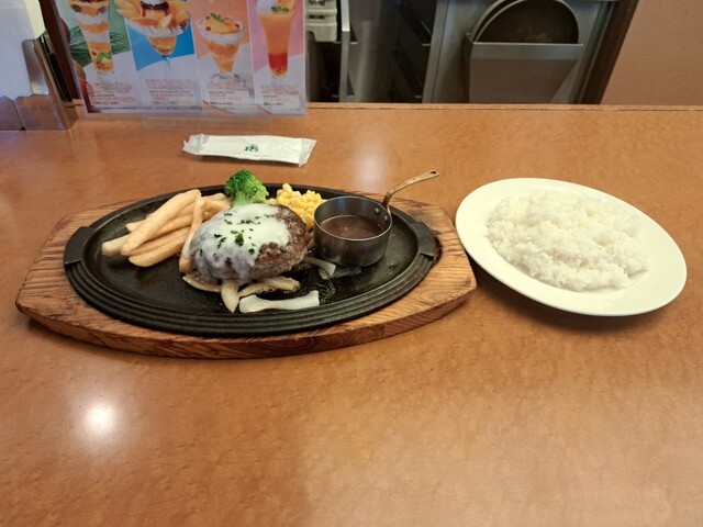 黒✕黒ハンバーグのガーリッククリームソースがけと、ライスの2ショットです。