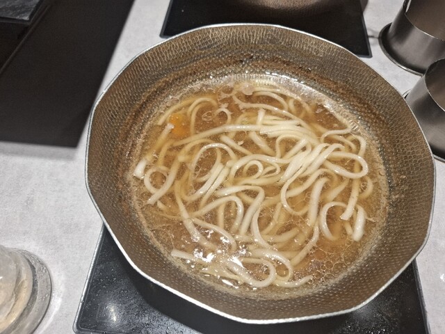埼玉県産の霜降り黒毛和牛サーロインは、豆乳ベースのスープでしっかりとウェルダン状態になるまでしゃぶしゃぶしても、甘味が口の中に余韻として残るほどの極上の旨さだったので、ポン酢と麻辣ダレに浸けたものを雑穀米の上にのせていただくと、至福の味わいを堪能することが出来たのである。そのため埼玉県産の霜降り黒毛和牛サーロインは、計6枚もいただいた。また、くずきりは前回に引き続いていただいたのであるが、今回は白滝(糸こんにゃく)もしゃぶしゃぶしていただいてみたのである。