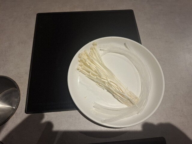 豆乳スープでしゃぶしゃぶした、えのきです。
