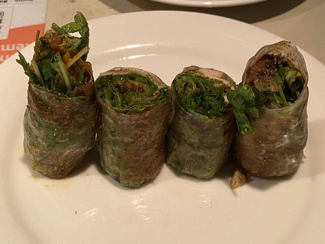 昔はグランドメニューにたくさん載ってて、たまに季節の料理がテンポラリに追加される感じだったのが(牡蠣をパクチーであえたやつとか)、新型コロナ後に常設メニューが3割くらいに減らされて3ヶ月ごとにメニュー変更するようになり、今はメニュー入れ替え頻度がよく分からないけど、たまに少しずつ変わる感じらしい。