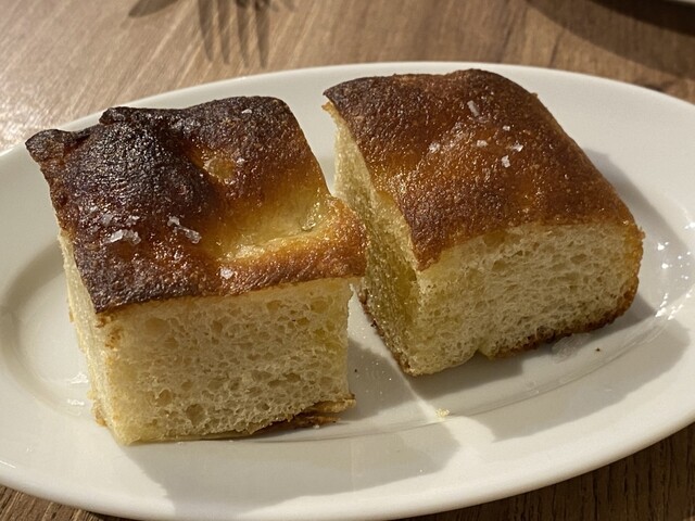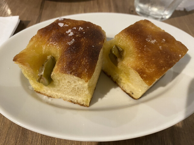お通しのフォッカッチャ(リベイクされてカリッとしてる)