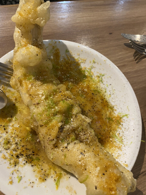 かるくあがったフリットにレモン風味をつけて爽やかなお味であと十匹食べられる