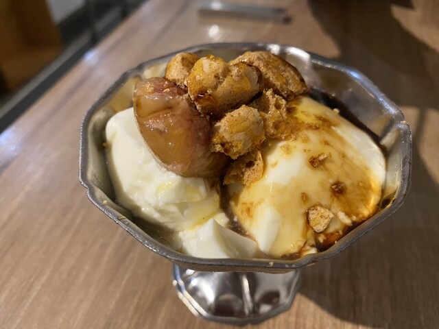 デザートはイチジクのコンポート添えということでパンナコッタ。ここまででお腹いっぱいなのに、何でかわからないけど、この甘みが強いパンナコッタがコーヒーと一緒にいただけて、やはり非常に美味。