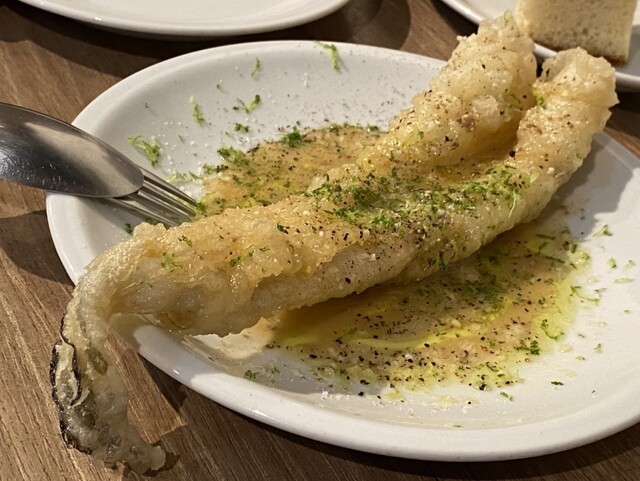 穴子のフリットは、大ぶりで大ボリュームでアンチョビオイルとカラスミの風味が美味