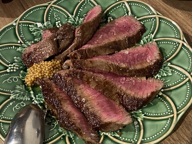 お肉は前回羊だったので今回は牛。生っぽいやつは苦手なことが多いんだけど、表面にやや焦げ目をつけて香ばしく、生っぽい嫌なたところもなく、脂味が多すぎて胸焼けするということもなく。しっかりお肉の旨みを感じられてやはり美味。