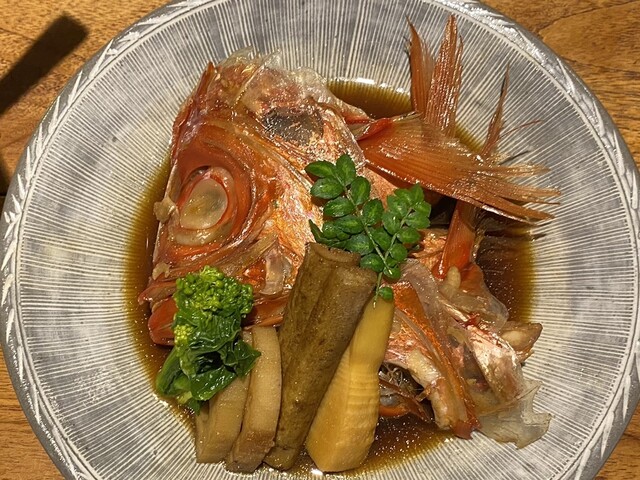 お造りに出されてた金目鯛のカブト煮があり注文。煮魚があることは珍しいと思うのだけど、やはり煮魚は美味しい。
