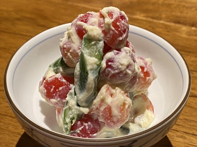 定番の季節の白和えの、桃と枝豆もとても美味しかった。桃と合わせたためなのか、枝豆が香ばしくとても美味
