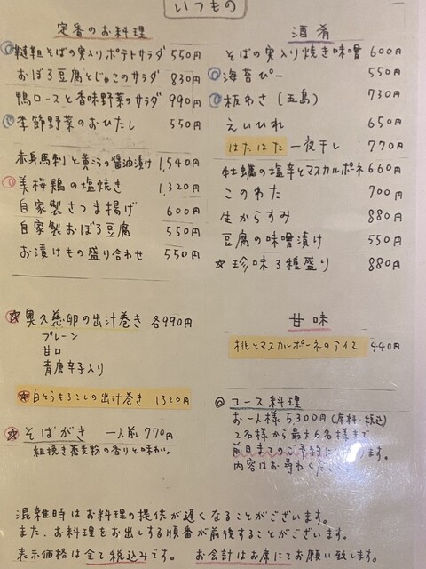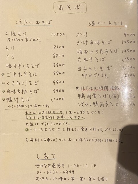 お蕎麦メニュー(2025.7某日)