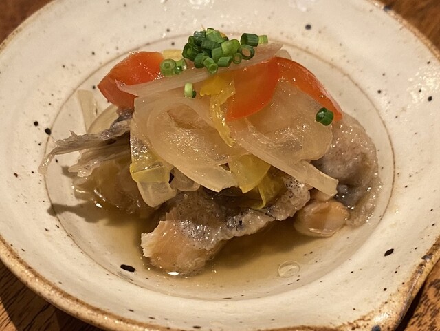南蛮漬けが前回の目光から若鮎に変わってたので注文。程よい酸味でどのお魚でも美味