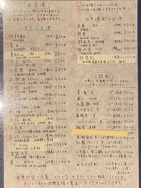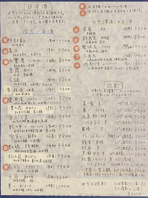 日本酒・焼酎メニュー(2025.7某日)