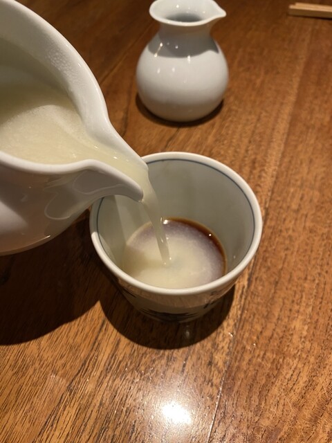 だし巻きの具は桜海老と九条葱。具のないやつも美味しいんだけど、具のあるやつはいつも季節の具材で作ってくれていて、これだけの量をよく巻けるなと。お出汁たっぷりできちんと美味しい
