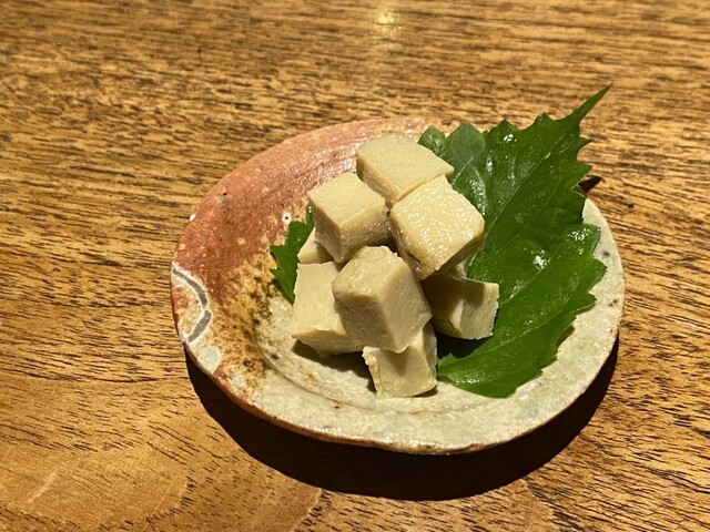 この日はお通しが自家製豆腐で初めてかもしれない。気になってたので食べられて嬉しい。軽く塩が振られてて美味