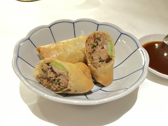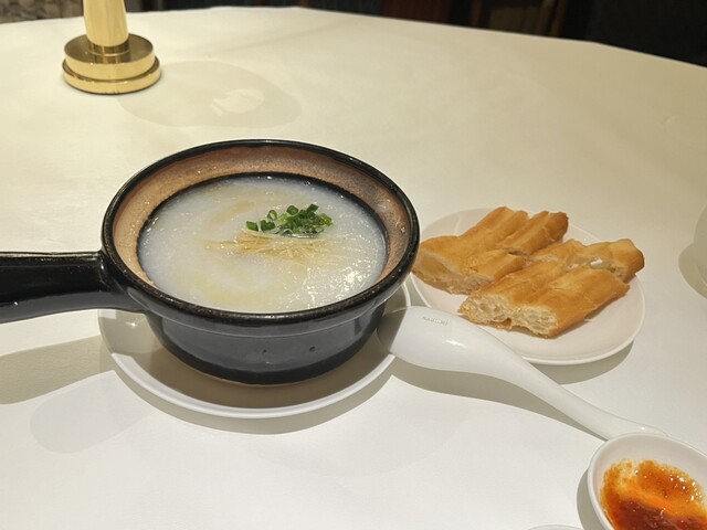 お料理は創作飲茶で、味付けは調味料を最小限に抑えて素材の味を引き立ててました。チョンファンの皮がモチモチプルプル。お粥も美味しかったです。