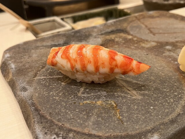 特に甘エビを昆布締めして、少し火を通したやつは、甘みと旨みが凝縮されて、しかも火の通りで表面は身が引き締まっているけど、内側はレアで柔らかく、魅力的なツンデレの女性に合ったようです。