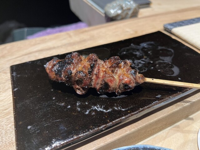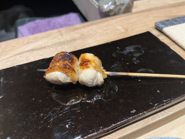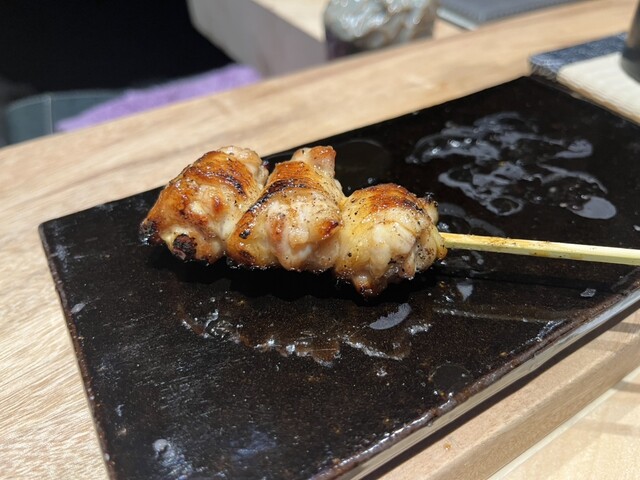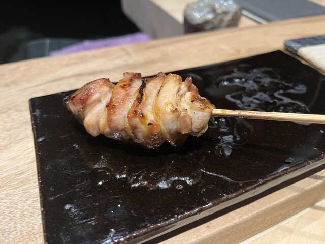 トップに君臨するのは天城シャモのもも肉。表面の皮をパリパリになるまで焼きながら、身は固くならないようにミディアムな火の通り加減。そして甘いネギを挟んで、少し歯応えがある部分を選び、こちらはしっかり火を入れて旨みを凝縮させ、噛むたびに旨さが溢れ出てきます。素晴らしい!