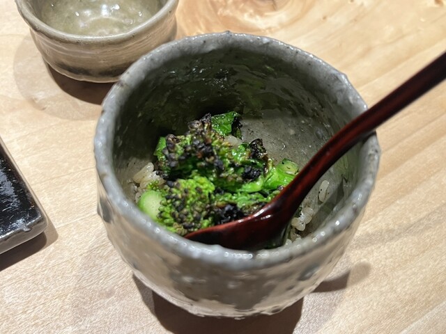 季節の野菜の付け合わせ、特にごぼうの白和えのごぼうの絶妙な硬さも出汁の味も丁寧なお仕事でした。