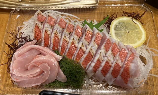 金目鯛のお刺身は湯引きしてあるところとそうではないところがあり