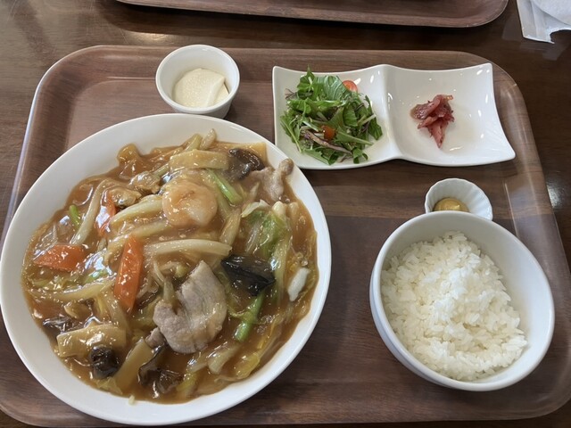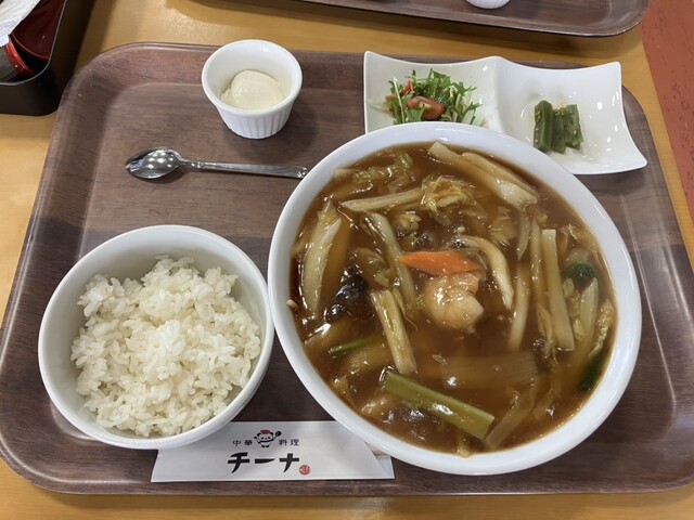 月曜日の昼丁度に2名で伺いました。店内は先客は3組位しかいなく、直ぐ着席できました。今回は五目あんかけセットからあんかけ焼きそばを注文。セットの内容はあんかけ焼きそばとサラダ、ザーサイと白米と杏仁豆腐。着丼まで早く、アツアツのあんかけ焼きそばを一気に完食まで食べてアツアツのうまうまです。チーナさんの料理は何食べても美味しいです。いつかディナーメニューを食べてみたいです。満腹満足、ご馳走様でした。是非、皆様ご賞味あれ!
