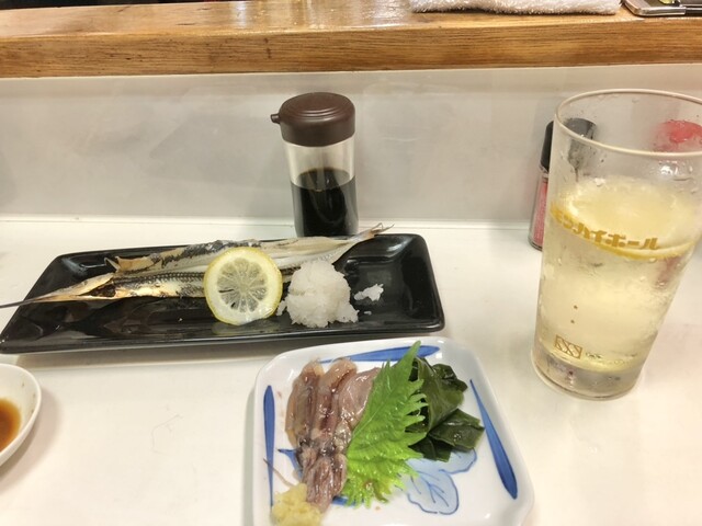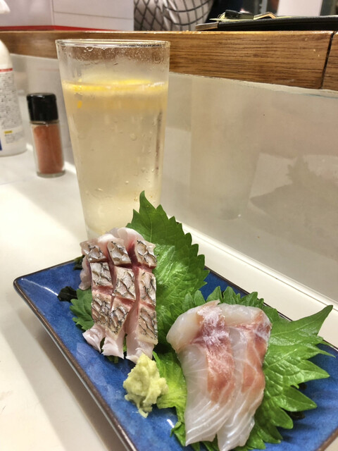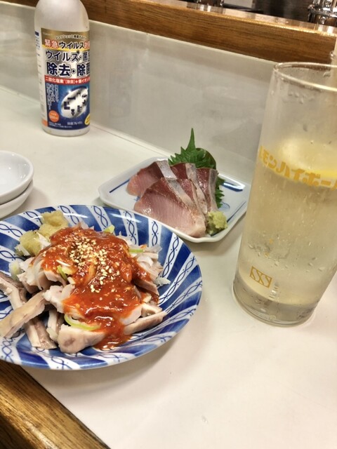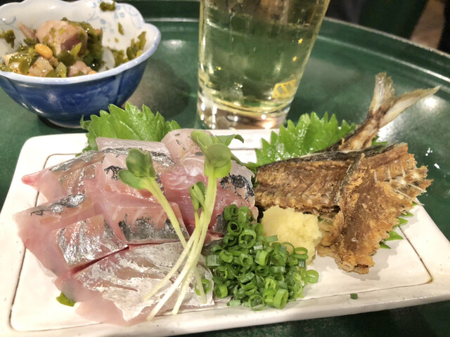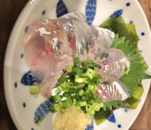 アジ刺しとワカメナムルが既にセッティングされていた。